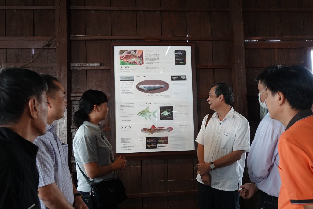 Tại phòng thông tin, nhóm thực hiện dự án cho trưng bày mô hình 3D của 15 loài cá nước ngọt quý trên sông Mê Kông như: cá hô, cá tra, cá chạch lấu, cá vồ cờ, cá bông lau, cá thát lát… Cùng với đó là những dụng cụ nghề cá đặc trưng của miền Tây như lưới, lờ… Ngay sau khi khai trương, phòng trưng bày đã thu hút sự quan tâm đặc biệt của du khách đến tham quan bè cá Bảy Bon.