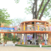 Cụ thể, thư viện gồm hai khối nhà theo hình tròn hai tầng được tạo hình, xây dựng xung quanh hai cây xà cừ cổ thụ tại khu vực sân nhà trường. Hai khối nhà cách nhau chừng hơn chục mét được kết nối bằng một đường cầu vững chắc.
